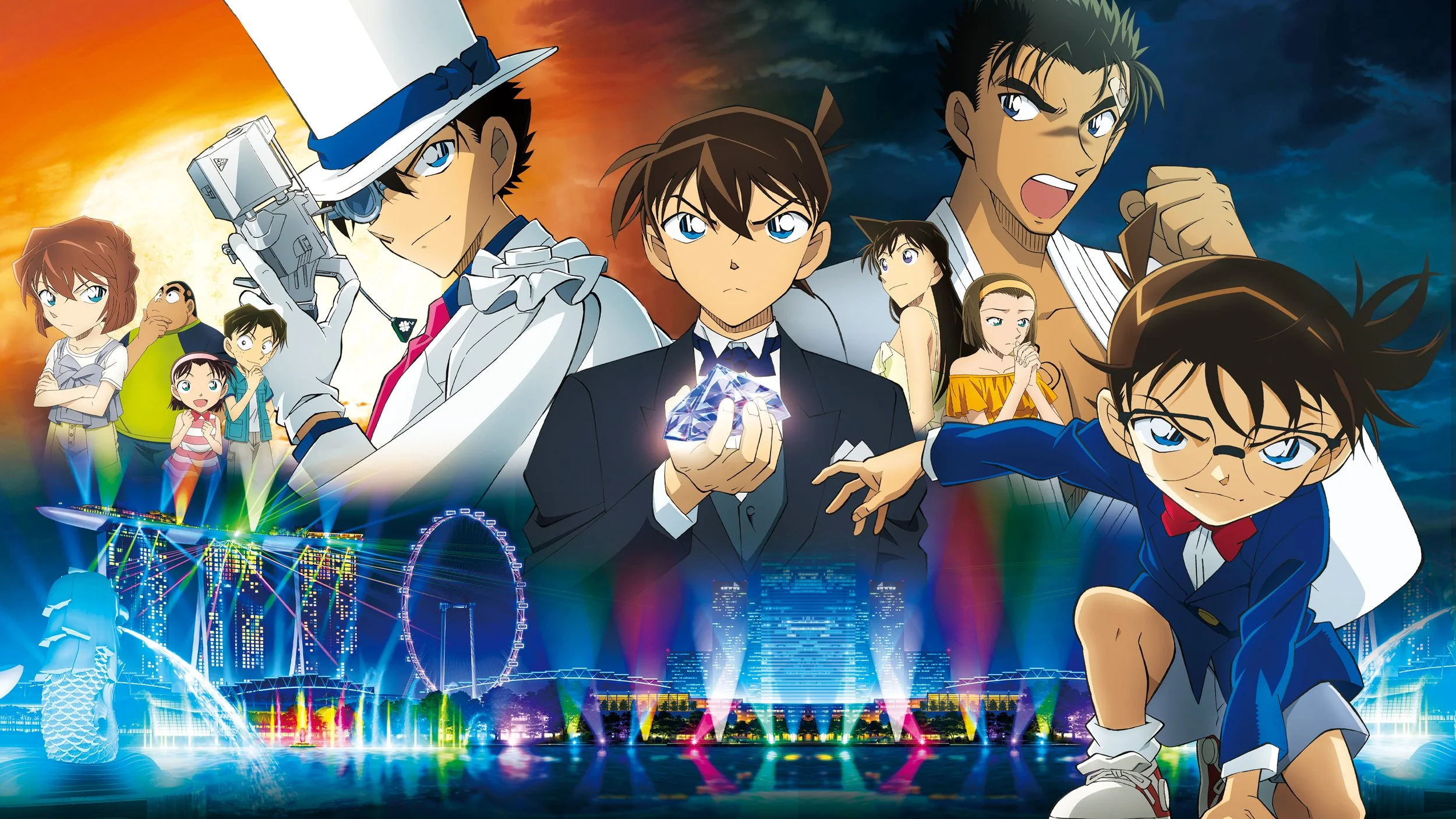 The world 's largest sapphire, “The Fist of Blue Sapphire" was alleged to have been lost at sea near Singapore along with a pirate vessel in the late 19th century. When a local billionaire appears to the public with a plan to retrieve the sapphire, a murder occurs in Marina Bay Sands. At the scene, a bloodied notice card from Kid the Phantom Thief is found.